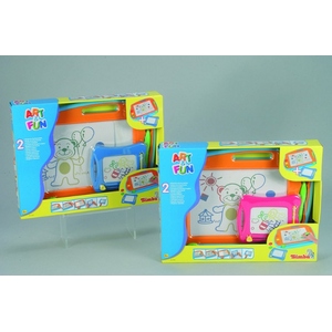 W zestawie odnajdziesz dwa magiczne znikopisy z zestawem specjalnych, kolorowych pisaków. Ich ślad, naniesiony na powierzchnię tabliczek, znika sam! Oznacza to ciągłe możliwości nowej, artystycznej zabawy! Dodatkowo na znikopisach każdy rysunek może zyskać kilka ciekawych ozdób. Wszystko za sprawą 3 fantastycznych stempelków.