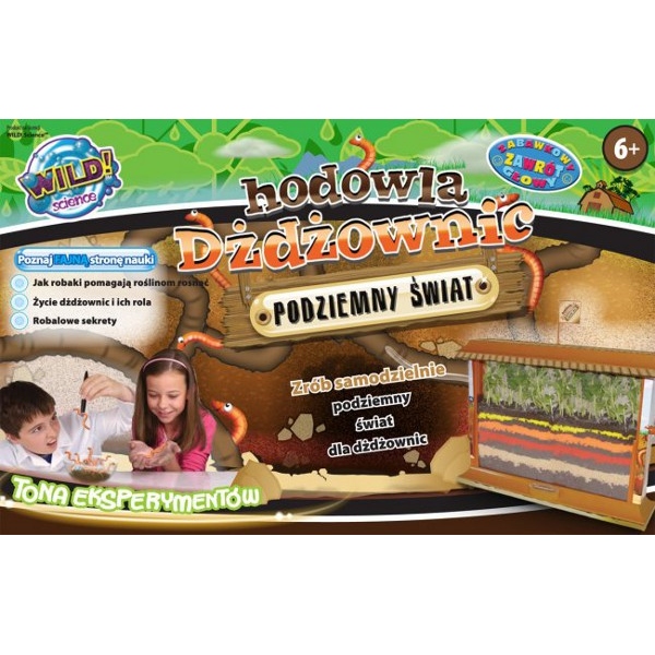 Znakomity naukowy zestaw, który pozwoli na hodowlę dżdżownic i podglądanie ich życia. Dziecko dowie się jaka jest rola tych robaczków w przyrodzie i ich sekrety.